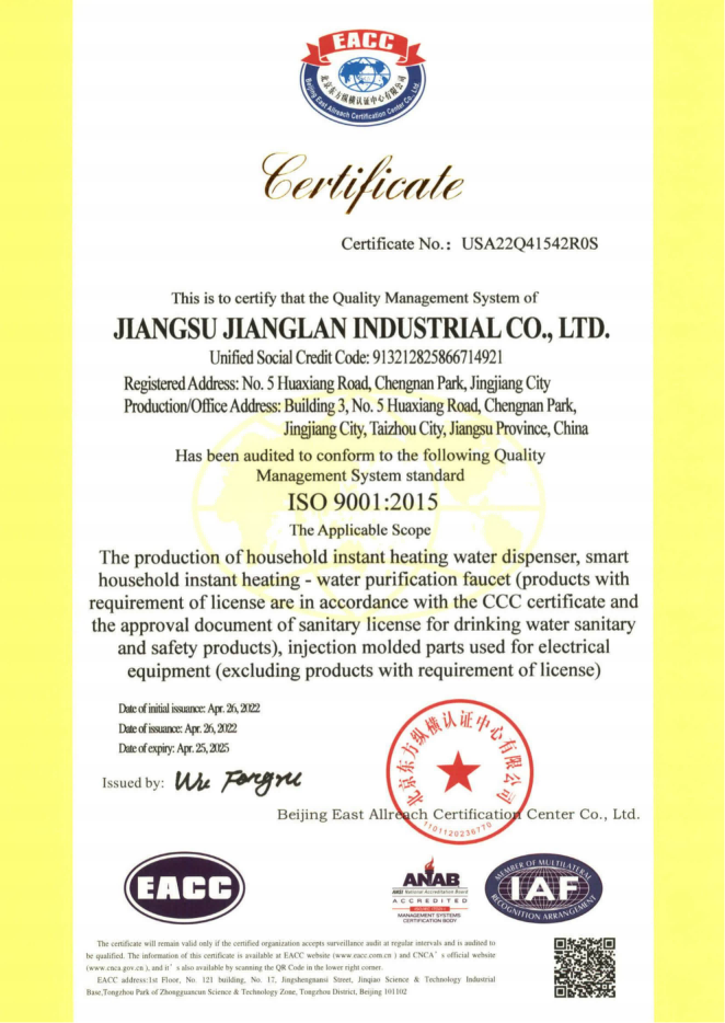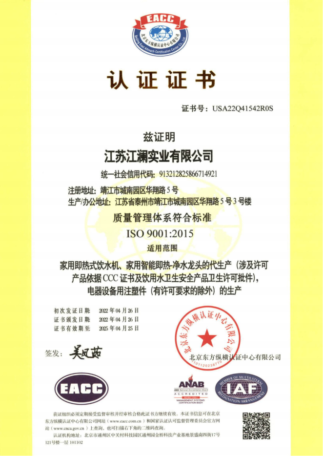 江蘇江瀾實業有限公司——全球領先的“凈冷熱”技術全生態解決方案專家與服務商,專注為健康水飲品牌提供從核心部件到整機的OEM/ODM一站式服務。作為“推動健康中國發展·助力國家雙碳戰略”的踐行者,江瀾深耕健康水飲領域近30年,凝聚全球前瞻“凈冷熱”技術,洞察用戶飲水使用體驗,解決行業產品核心部件因創新力不足導致的適配性、精度及穩定性低、如“漏電漏水隱患、加熱導熱率低、出水流量低、內置浮球、水箱、多膠管連接造成的污染隱患、飲水體驗不佳等痛點,江瀾“用技術顛覆傳統·以科技革新體驗”為核心驅動,持續引領水處理技術升級,保障產品的穩定性及可靠性。我們聚焦水凈化與制冷、制冰、制熱功能的深度融合,打造滿足家庭、商業等多場景健康飲水需求的創新方案,以技術革新驅動多場景飲水體驗升級。